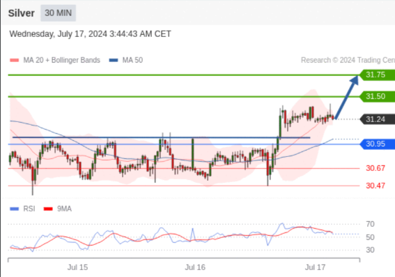 在 30.95 之上,看涨,目标价位为 31.50 ,然后为 31.75 。