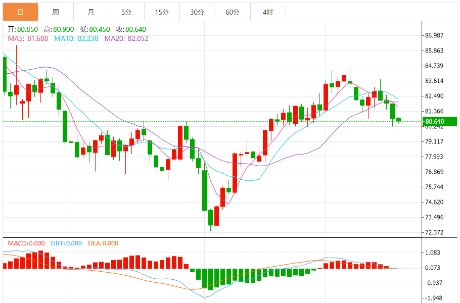 今天的预期交易区间:在79.00美元支撑位和82.00美元阻力位之间