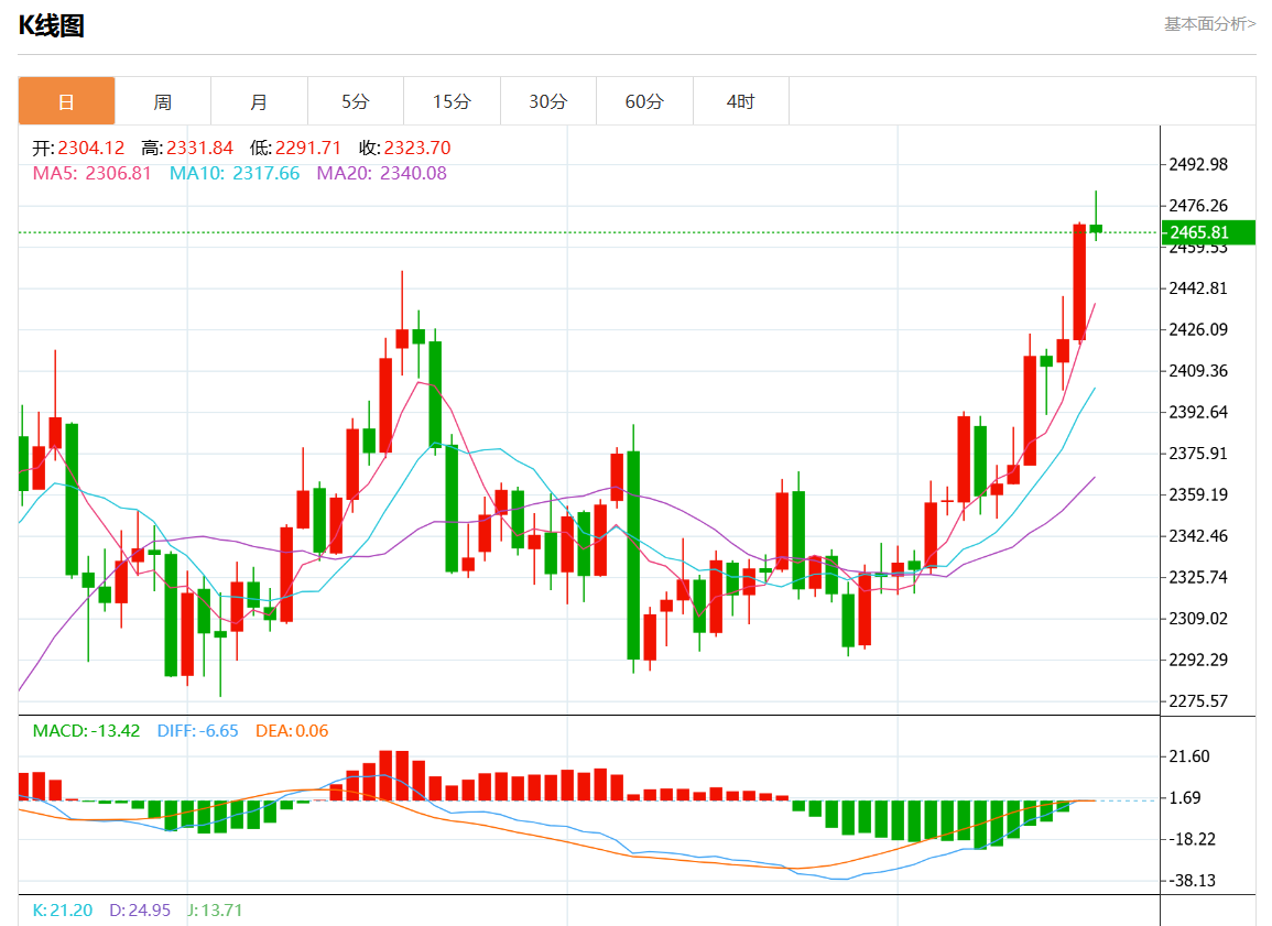 周三欧市盘中,现货黄金报2475.46,涨幅0.28%。