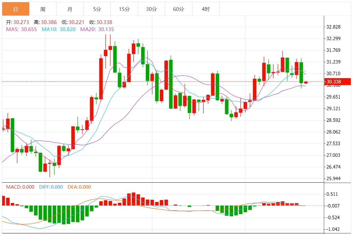 今天的预期交易区间在 29.10 美元支撑位和 30.10 美元阻力位之间。