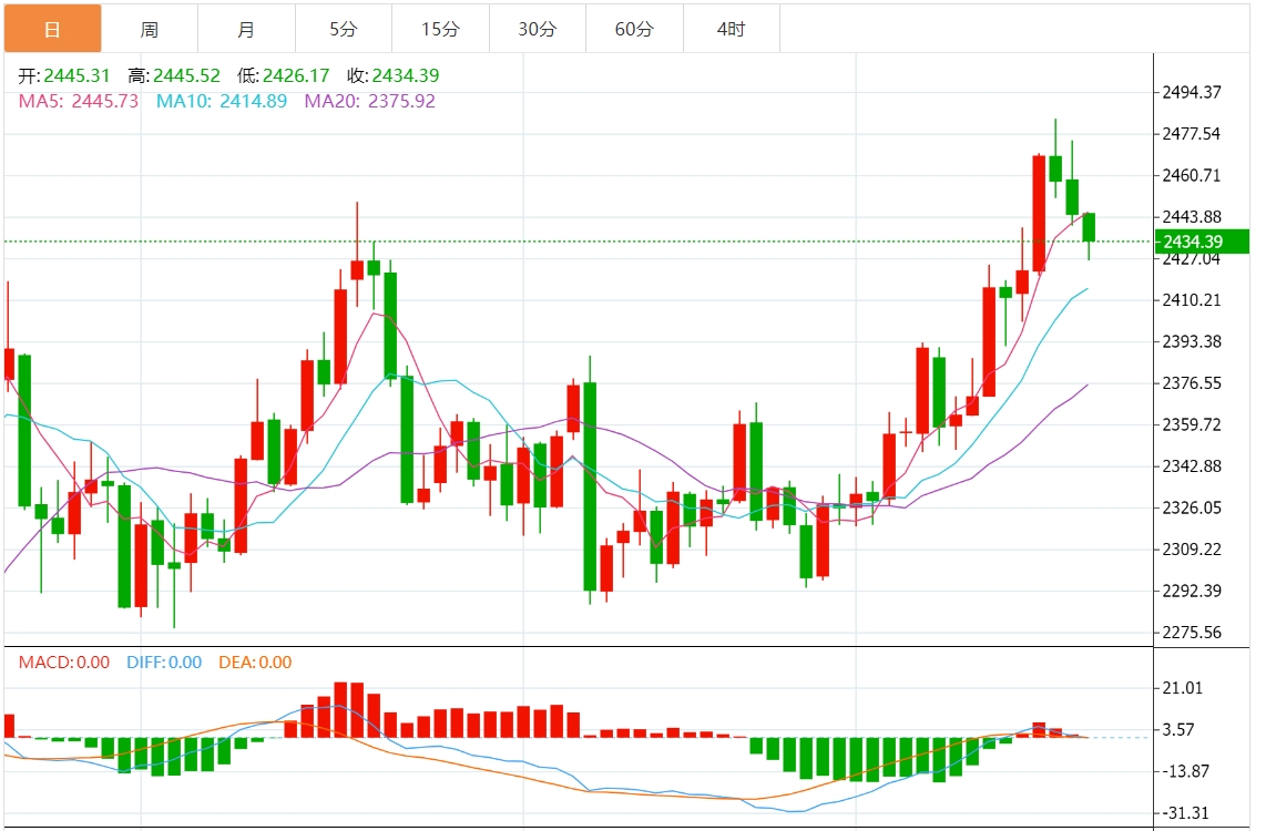 今天的预期交易区间在 2405.00 美元支撑位和 2445.00 美元阻力位之间。