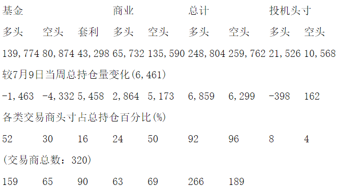 美国商品期货交易委员会(CFTC)最新公布截止7月16日当周COMEX铜期货分类持仓报告: