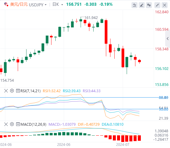 美元/日元徘徊在50日均线下方,但仍远高于200日均线。EMA证实了看跌的短期但看涨的长期价格趋势。美元/日元突破50日均线将支持其向160移动。突破160可能会使多头在7月3日的高点161.951。