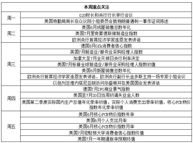 本周国际现货黄金开市跳空高开,开市价为2411.28美元/盎司,但无法维持逐步走低,重回2400下方,本周美国将公布众多重磅消息,全球采购经理人指数(PMI)、美国第二季度GDP增长初值、美国6月份个人消费支出(PCE)价格指数等重要数据,这些数据将强弱表现,将会影响市场对于美联储利率的走向预期,美联储降息预期继续牵扯着市场神经。而美国大选方面,随着特朗普胜选的可能性越高,特朗普推行的保护主义政策,或会对贸易带来负面影响,以及恐会增加地缘政治局势风险。