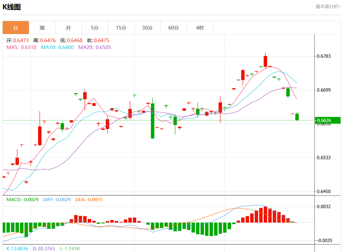技术点评:跌破0.6660,为空头信号,向下的目标将会是0.6610。