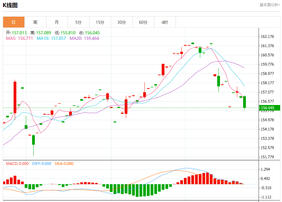 日内高位:157.11