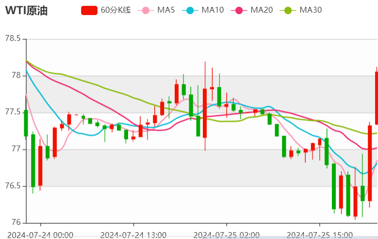 WTI原油短线上扬0.6美元,报77.01美元/桶。