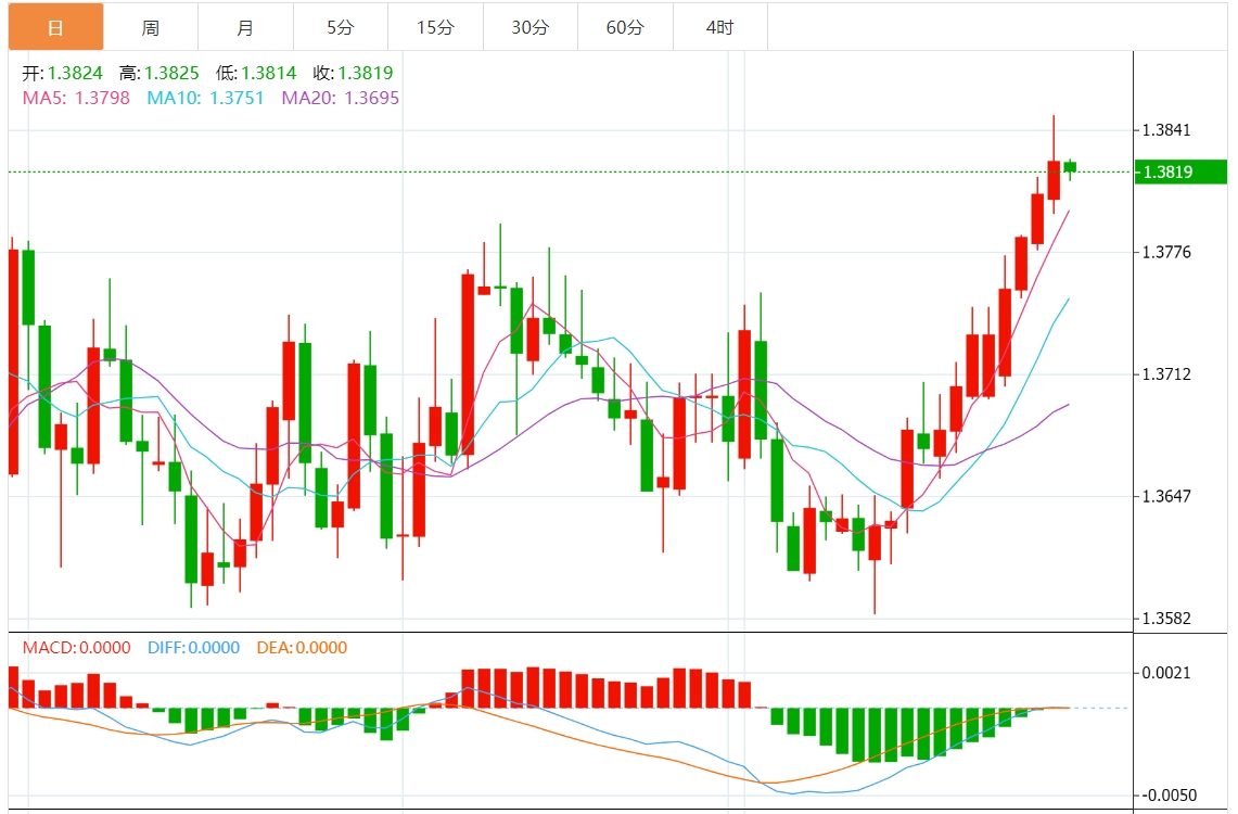 今天的预期交易区间在 1.3760 美元的支撑位和 1.3900 美元的阻力位之间。