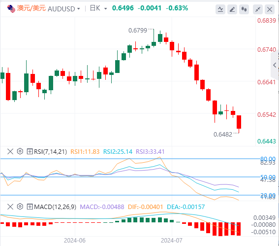 相反,澳元/美元跌破0.65美元可能会让空头在0.64582美元的支撑位上奔跑。澳元处于超卖区域,14周期每日RSI读数为29.16。购买压力可能会在周一低点0.65241美元处加剧。