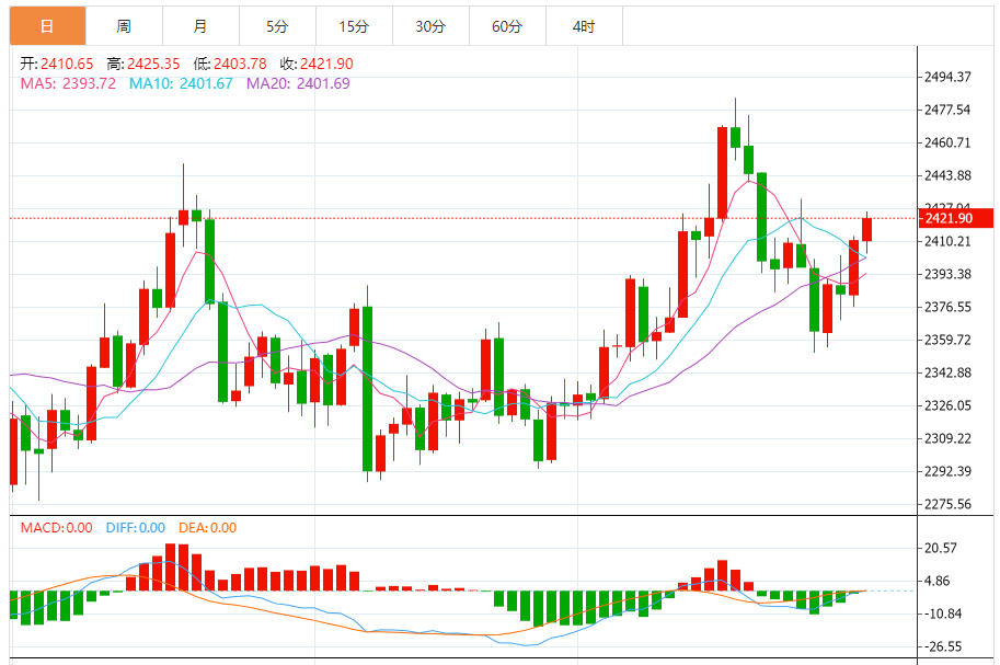 今天的预期交易区间:在2395.00美元支撑位和2435.00美元阻力位之间。