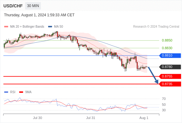 交易策略: 在 0.8810 之下,看跌,目标价位为 0.8755 ,然后为 0.8735 。