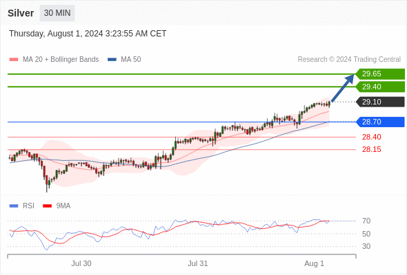 交易策略: 在 28.70 之上,看涨,目标价位为 29.40 ,然后为 29.65 。