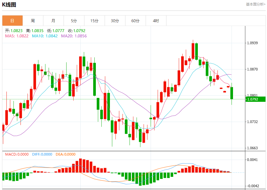 汇价高见1.0835,低见1.0777。上一交易日,汇价收于1.0824。