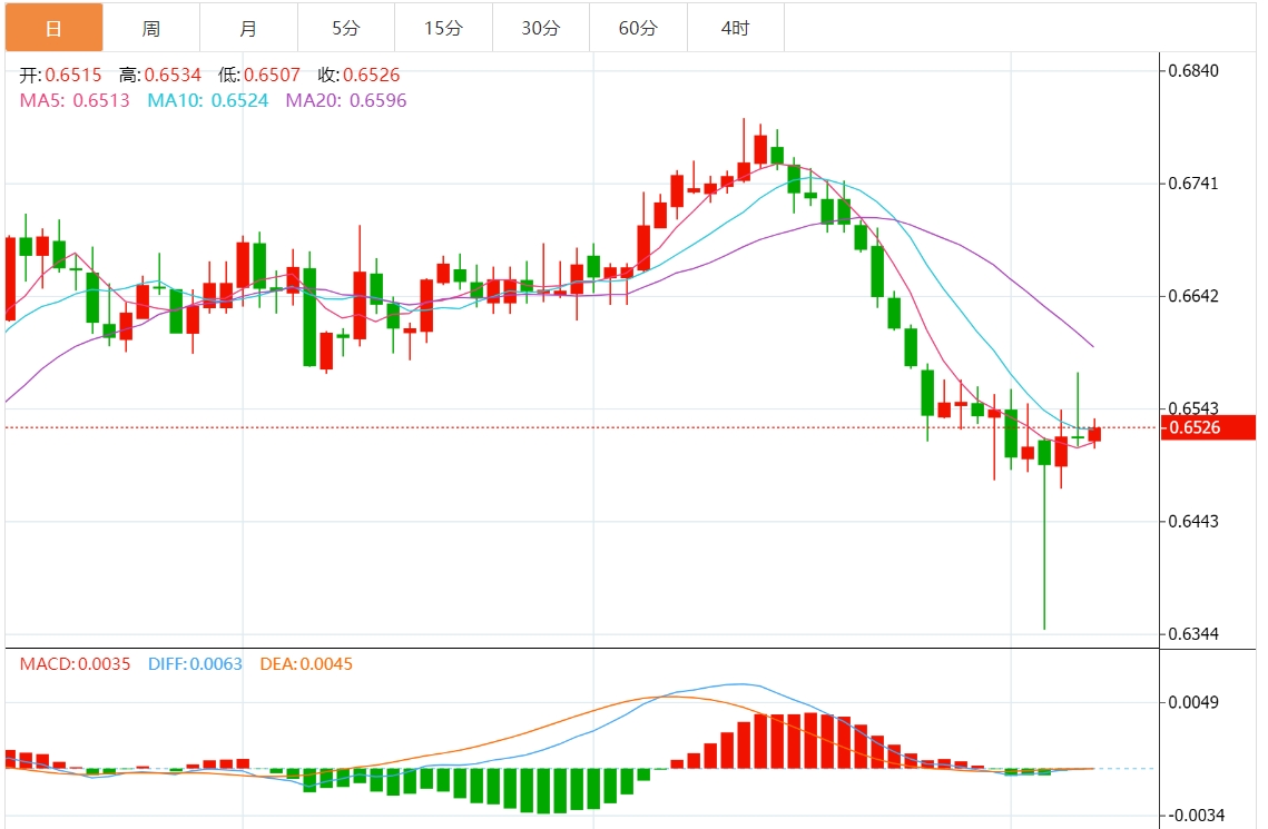 技术分析:澳元徘徊在0.6550附近