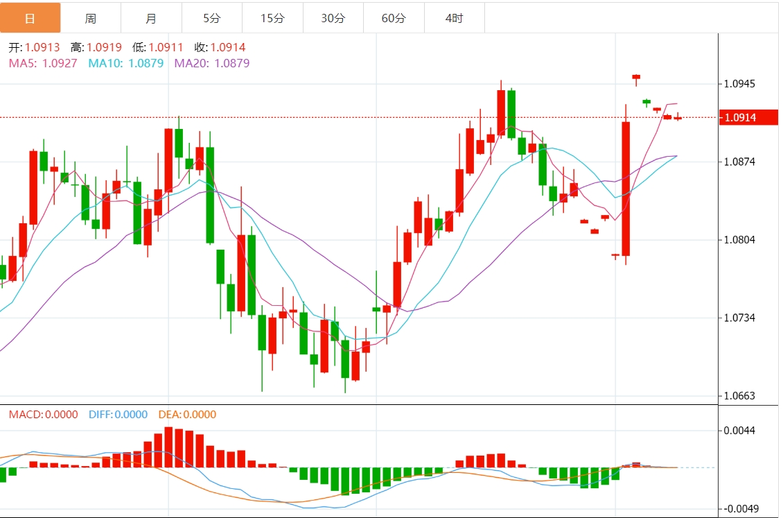 在美国数据显示周初请失业金人数从25万降至23.3万后,欧元/美元走低。 当天晚些时候,随着风险资金开始主导金融市场的走势,美元(USD)失去了强势,从而使欧元/美元抹去了日内跌幅。