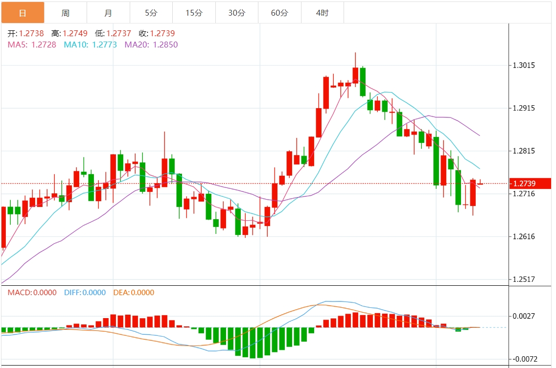 支撑位在1.2710(斐波纳契61.8%回调位)、1.2670(静态水平)和1.2620(静态水平,最新上升趋势的起点)。