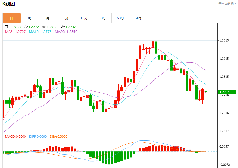 汇价高见1.2772,低见1.2736。上一交易日,汇价收于1.2748。