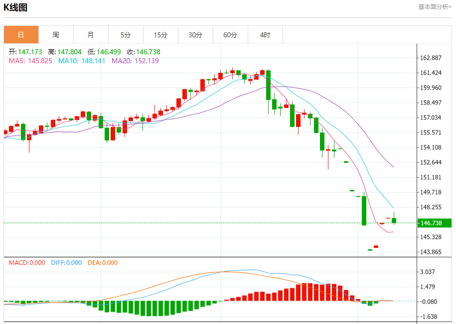 技术点评:146.70附近形成了一个支撑的底部,将带来走势短期内的稳定。
