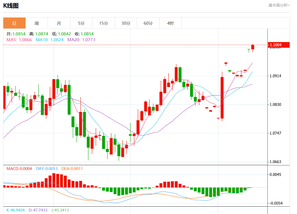 周三欧市盘中,欧元/美元最新报1.1006,日图涨0.12%。