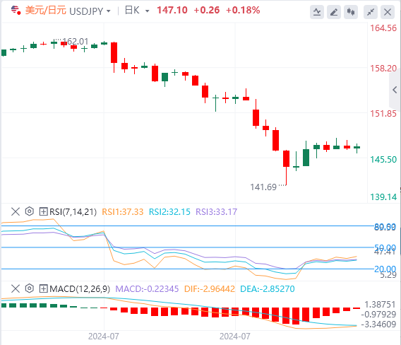 从技术角度看,美元/日元似乎已经突破了近期自数十年高点以来跌势的23.6%回档位。加上周三出现一些逢低买盘,支持汇价短期上涨的前景。不够,在建立新的看涨头寸之前,谨慎的做法是等待价格突破短期交易区间阻力位147.80区域附近。之后现货价格可能加速上扬突破148关口以及位于148.20区域附近的一周震荡高点并立志收复149.00关口。动能可能进一步延伸至38.2%回档位149.30区域附近。