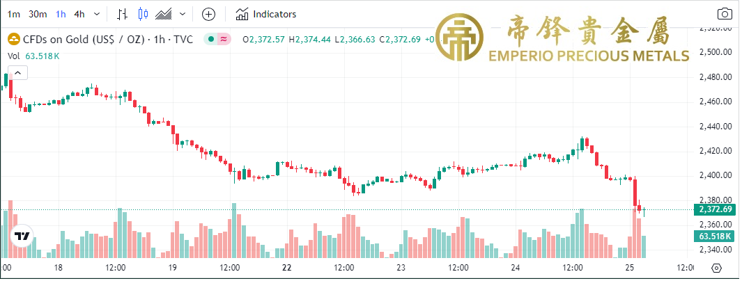 週三金价先升后跌,早段开市向上攀升,中段震蕩调整过后再度上涨,尾段最高升至2431,但其后受阻下挫,收市前跌势加剧,最低跌至2397。昨日公布的SPGI製造业PMI仅仅录得49.5,再次处于收缩险之下,但金价未能藉此利好,只能小幅上涨,并最终由升转跌