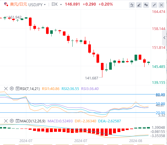 支撑位方面,美元/日元可能会测试8月5日触及的七个月低点141.69。进一步下跌可能会推动该货币对走向下一个重要的支撑位140.25。