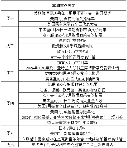 本周国际现货黄金开市价为2504.90美元/盎司,周一美盘时间震荡回落,跌破2500关口,上周五现货黄金价格突破2500关口,注意现货黃金价格向下盘整,地缘紧张局势继续支撑着金价,受到美国经济衰退担忧减缓的影响,市场减低美联储9月降息50个基点预期25%,静待美国反面经济数据,来判断美联储9月降息的幅度,本周需关注美联储官员讲话,消息面方面,本周重要经济数据不多,关注美国PMI数据、美联储货币政策会议纪要、美联储主席鲍威尔在杰克逊霍尔的讲话等数据消息。