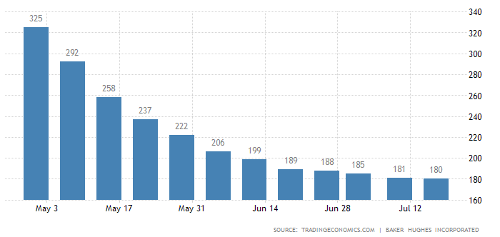 美国油服公司贝克休斯(Baker Hughes)周五(7月17日)公布的数据显示,截至7月17日当周,石油钻井总数减少1座至180座,当周天然气钻井总数减少4座至71座;总钻井总数减少5座至253座。