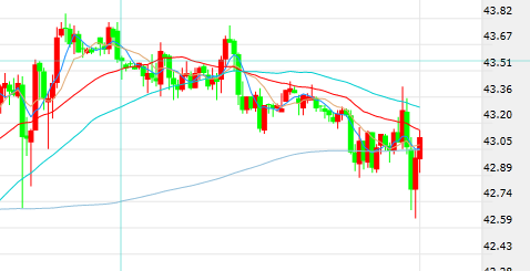 加西时间上午08点36分(北京时间周五晚23点36分),布伦特原油期货价格报43.02美元/桶。