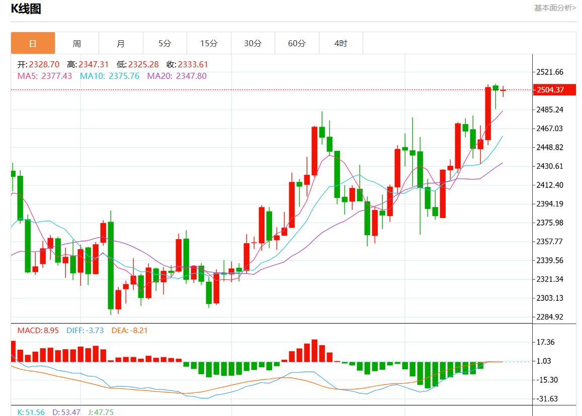 周二欧市盘中,现货黄金报2519.53,涨幅0.62%。