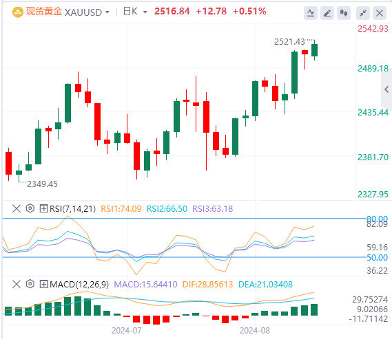 尽管市场猜测美联储可能在9月降息,但美元走强令黄金承压。此外,对美国经济急剧放缓的担忧有所缓解,降低了黄金作为避险资产的吸引力。