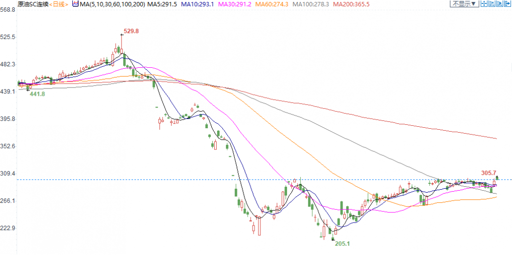 支撑位:美油35关口获支撑;INE原油280关口存支撑。