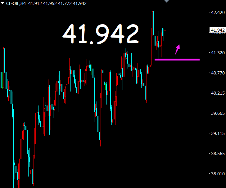 原油周三处于42-41.1区间震荡,晚间EIA数据利空,油价41.1受阻后再次反弹到达42一线,波动较小,四小时线油价41.1受阻于中轨支撑反弹,上轨向上,将再次上测42.5一线,日内可关注此位的突破情况,下方以41为分水岭,上方看反弹,操作思路看震荡向上