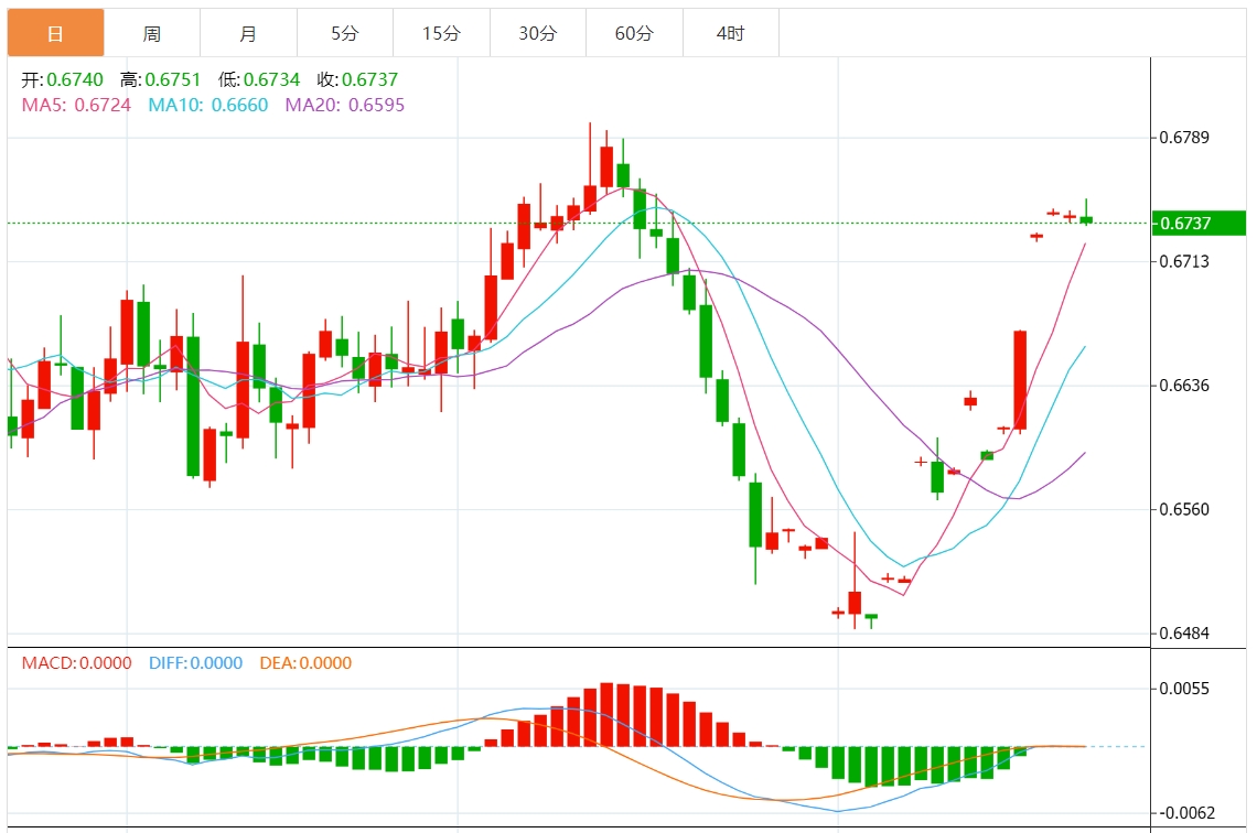 展望未来,该货币对可能会在0.6750水平附近遇到阻力。对于任何突破该水平的重大推动,交易者应密切关注成交量和 RSI。支撑位在0.6700-0.6650区域。(亚汇网编辑:小七)