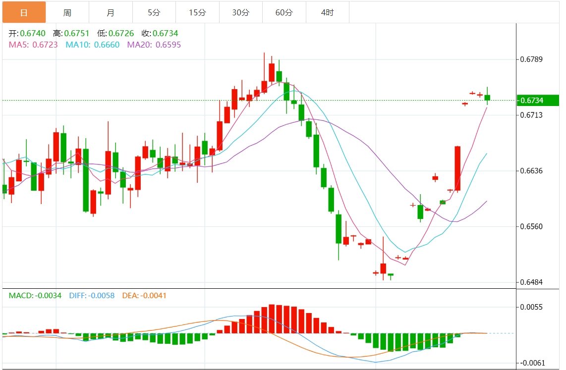 技术分析:澳元从0.6700反弹,重新进入上升通道