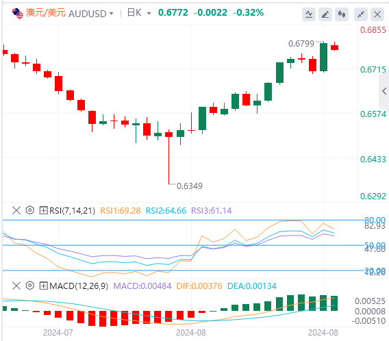 今天的预期交易区间在0.6720美元支撑位和0.6820美元阻力位之间。
