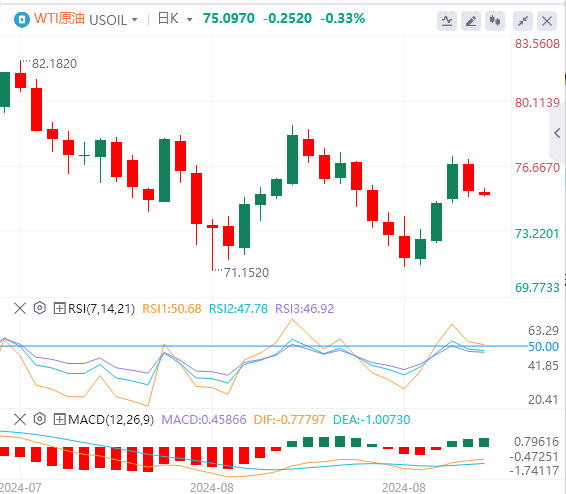 8月28日,周三欧市初盘,原油的交易价格约为75.09美元。由于投资者担心美国和中国经济增长放缓,WTI价格小幅走低。