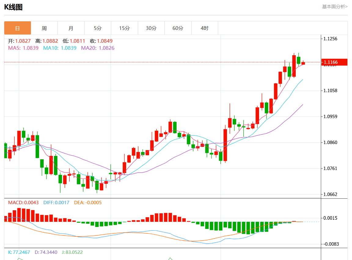 周三欧市盘中,欧元/美元最新报1.1157,日图跌0.24%。