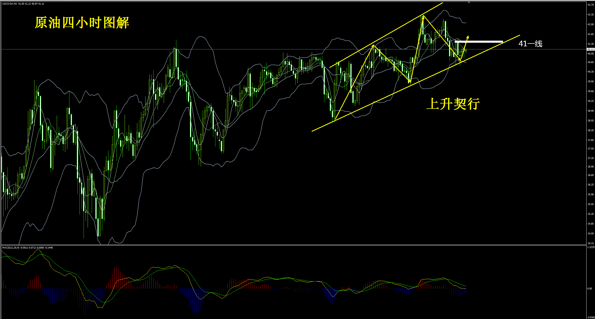 提示:原油短期难以下跌,日线级别一直处于上升趋势,空头无力反击,回撤布林带下轨跑步进场多,上方看布林带上轨42.2一线!
