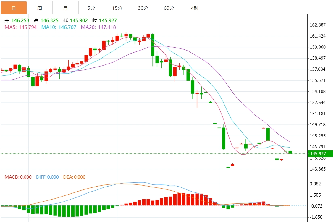 今天的预期交易区间在 143.75 支撑位和 145.40 阻力位之间