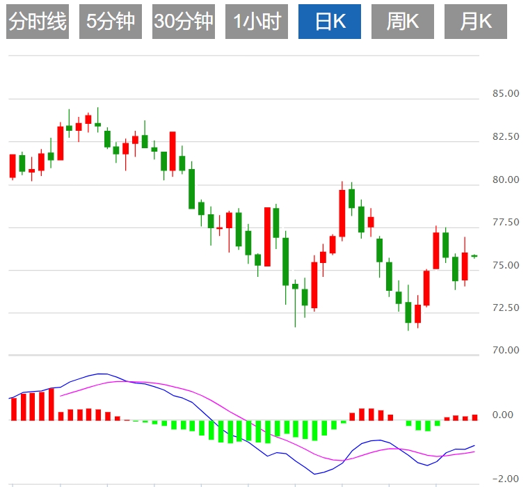 技术上,WTI原油期货昨日强劲上涨,强势冲击76.86并试图回归多头轨道,但收盘价却未能站稳该水平,使得再次下跌的可能性仍然存在。技术因素之间的矛盾让我们更倾向于观望,直到得到下一个趋势更清晰的信号。