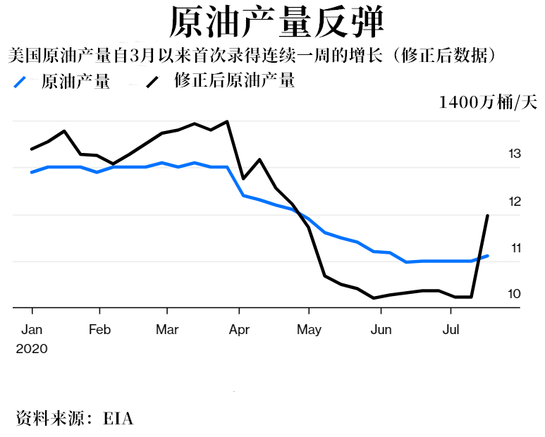 但沙特不是原油供应增加的唯一来源,北美的原油产量也已从疫情最严重期间的水平复苏。据EIA上周的数据显示,排除热带风暴Cristobal的影响后,美国原油产量自3月以来首次录得增长。(该风暴曾在6月份横扫墨西哥湾,导致日产量短暂减少50多万桶。)
