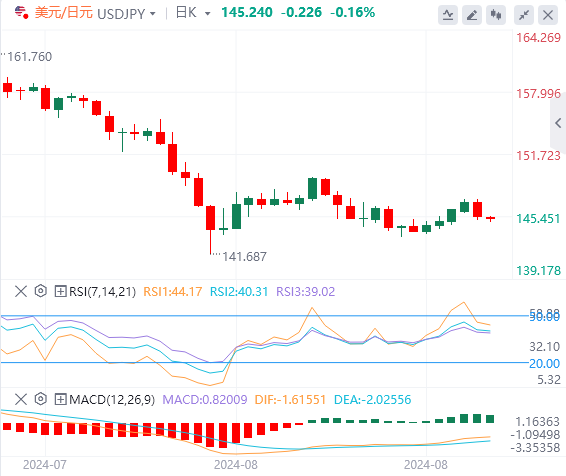 对于美元/日元,支撑位可能在8月5日创下的七个月低点141.69附近,下一个关键支撑位在140.25附近。