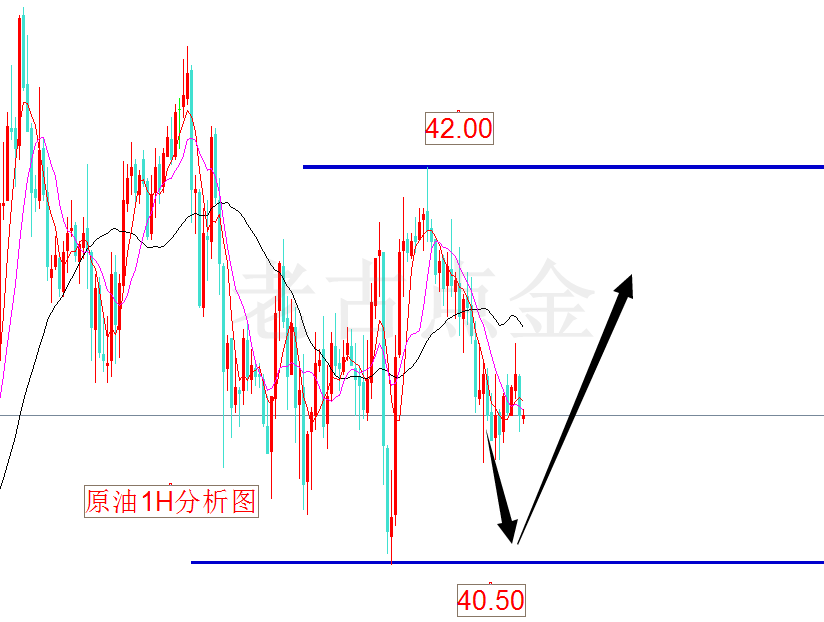 最近的原油一直在维持区间震荡,我们分析都无心分析它,因为它没有明确的大方向,在大周期上趋势超级迷茫,这样的震荡已经维持了七周,老古认为短期内也不会结束,短线我们在操作上继续看区间震荡,原油不是大口吃肉的行情,震荡合适短线操作快进快出,这样的震荡行情在没有大的基本面左右下暂时性不会结束,我们预计后期一旦结束将会迎来原油爆炸性行情,市场有句老话叫“横多久聚集的动力就有多大”,今天我们先关注42-40.50这个区间,白盘在40.50-41.00之间找做多的机会,如果靠近42.00也可以做空。
