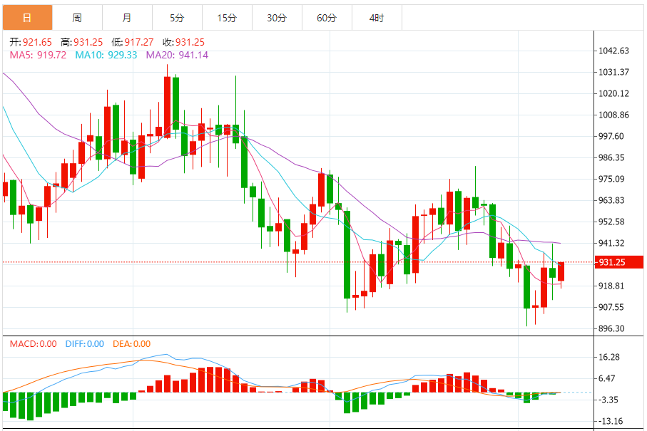 今日最新铂金行情:931.05
