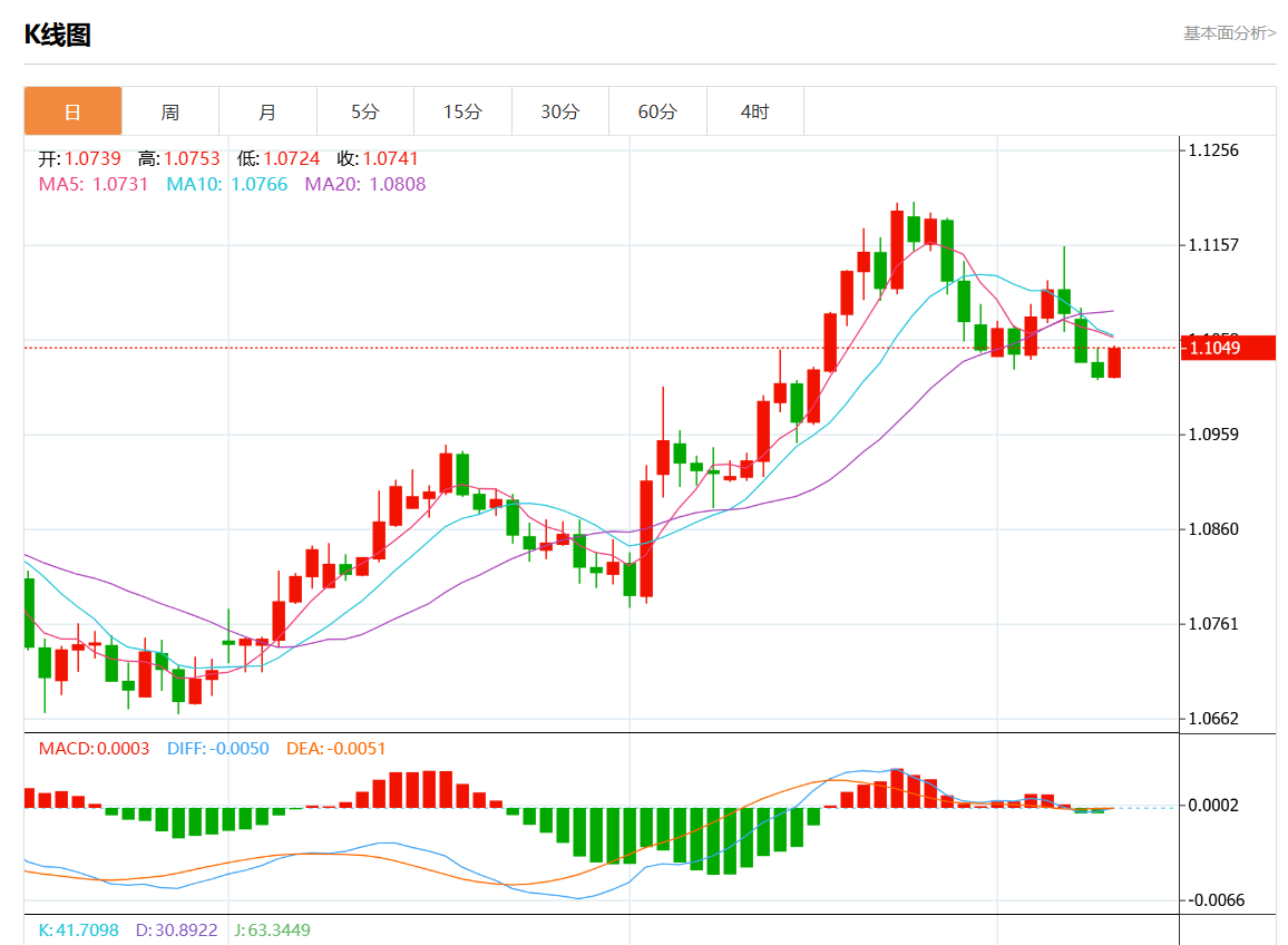 周三欧市盘中,欧元/美元最新报1.1045,日图涨0.24%。