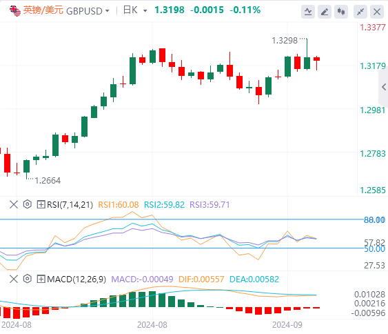 美国联邦储备局(Fed)周三决定启动政策宽松周期,并将借贷成本下调50个基点(bps),尽管未来超大规模降息的希望降温。此外,美联储政策制定者认为通胀不会在2026年之前回到2%的目标,从而引发美国国债收益率的急剧回升。这反过来又将追踪美元兑一篮子货币的美元指数(DXY)推高至一周高点,并成为对英镑/美元货币对施加一些下行压力的关键因素。与此同时,对英格兰银行(BoE)降息周期可能比美国(US)慢的预期继续支撑英镑并有助于限制该货币对的损失。周三公布的英国消费者价格指数(CPI)报告显示,8月份服务业通胀加速超过预期。这再次证实了英国央行将在本周四晚些时候的9月政策会议结束时保持利率稳定的押注,并在围绕英镑/美元货币对进行看跌押注之前需要谨慎行事。