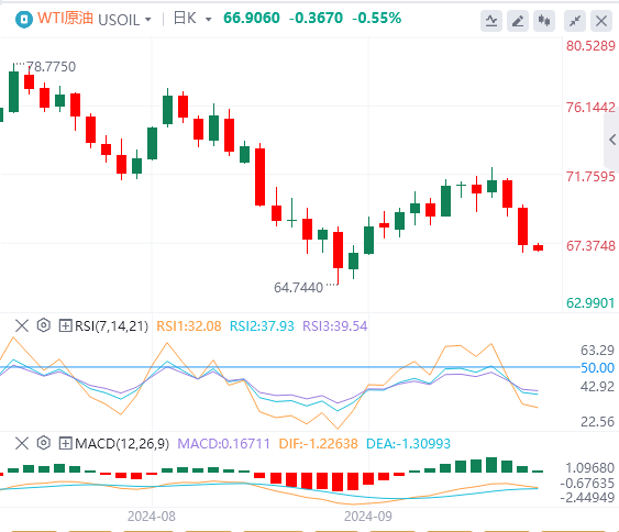 另一方面,由于中国官员本周早些时候宣布了新的刺激计划,原油的下行空间可能有限。由于中国是世界上最大的原油进口国和第二大消费国,由于最近的措施导致中国需求增加的前景可能会推高WTI价格。
