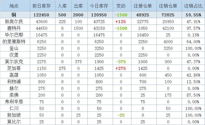 铜库存减少1500吨 鹿特丹仓库降幅依然最大
