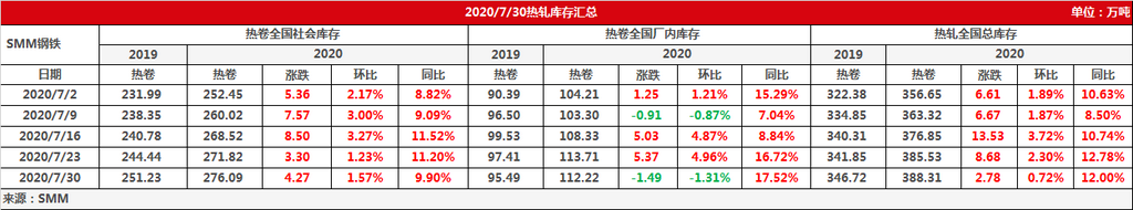 7月第五周全国热卷库存
